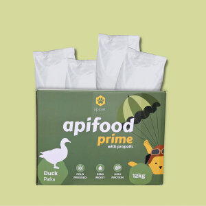 Apifood Prime Duck je popolna hladno stiskana hrana, namenjena odraslim psom vseh pasem. Zaradi 78 % sveže race in semi-moist teksture je še posebej primerna za: