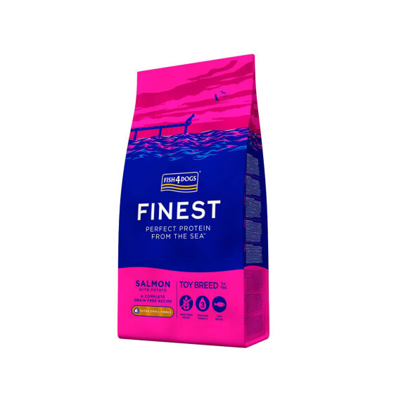 Fish4Dogs losos hrana za miniaturne pasmine ponuja višjo energijsko vrednost ter več beljakovin in maščob, da zadovolji potrebe majhnih psov. Boljša prebavljivost rib naredi to hrano idealno za toy pasme.