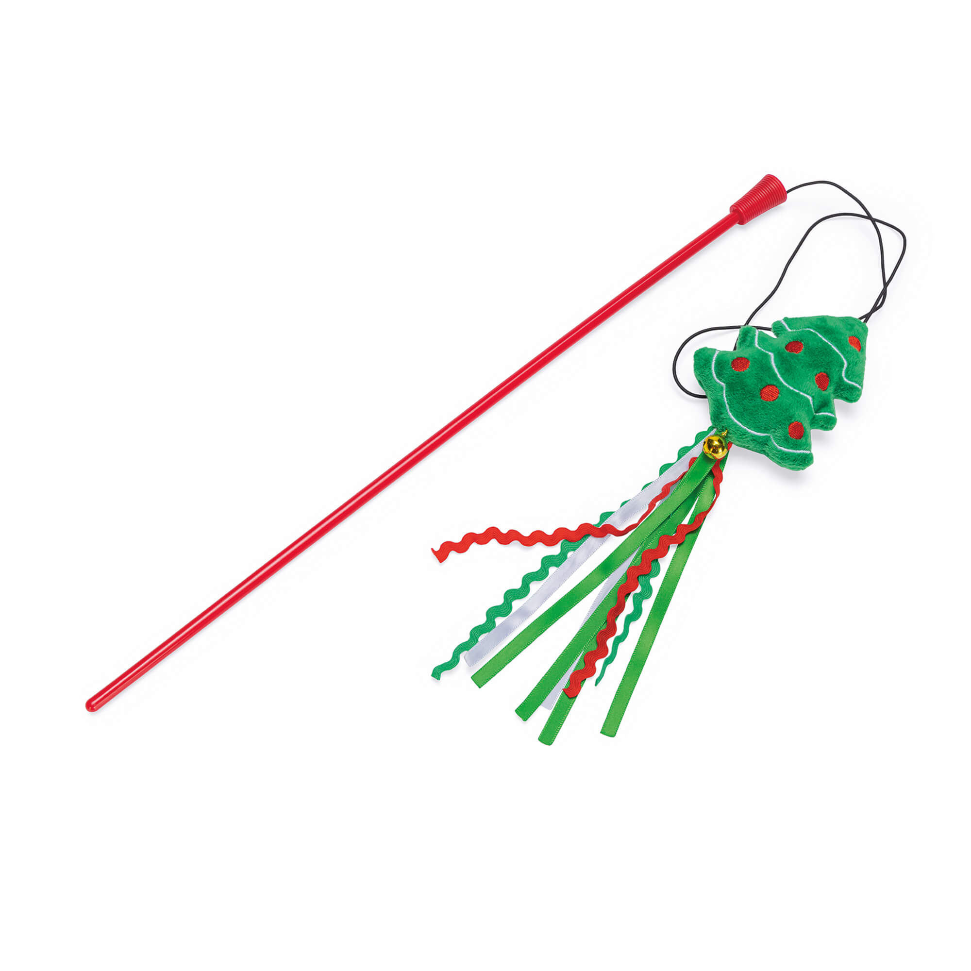 S to božično igračo za mačke Beeztees v obliki božičnega drevesca se lahko igrate s svojo mačko ure in ure. Ta mačja igračka vključuje plišasto božično drevesce na vrhu palice ter trakove in zvonček, pritrjene na drevesce, ki privabljajo vašo mačko k igri. Poleg tega se v notranjosti drevesca nahaja mačja meta, ki ima evforični učinek na večino mačk. Ko vaša mačka pozitivno reagira na mačjo meto, bo še bolj uživala v igri z vami.
