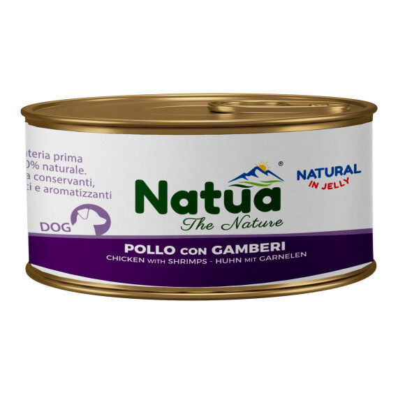 Natua Jelly Dog piščanec z rakci je v pločevinki 150 g.