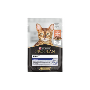 PRO PLAN ADULT INDOOR, z lososom v omaki, mokra hrana za mačke 85 g