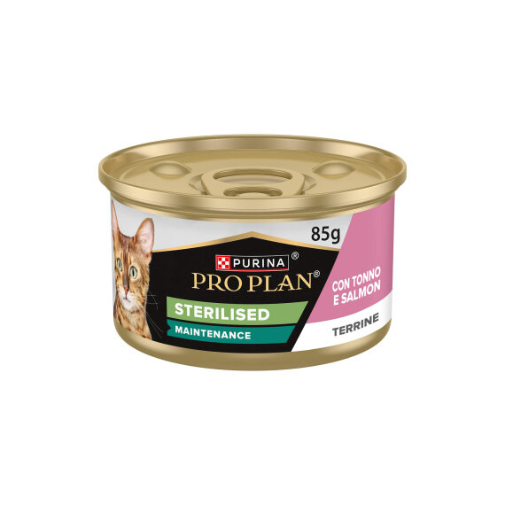 PURINA PRO PLAN STERILISED MAINTENANCE, terina za mačke s tuno in lososom 85 g