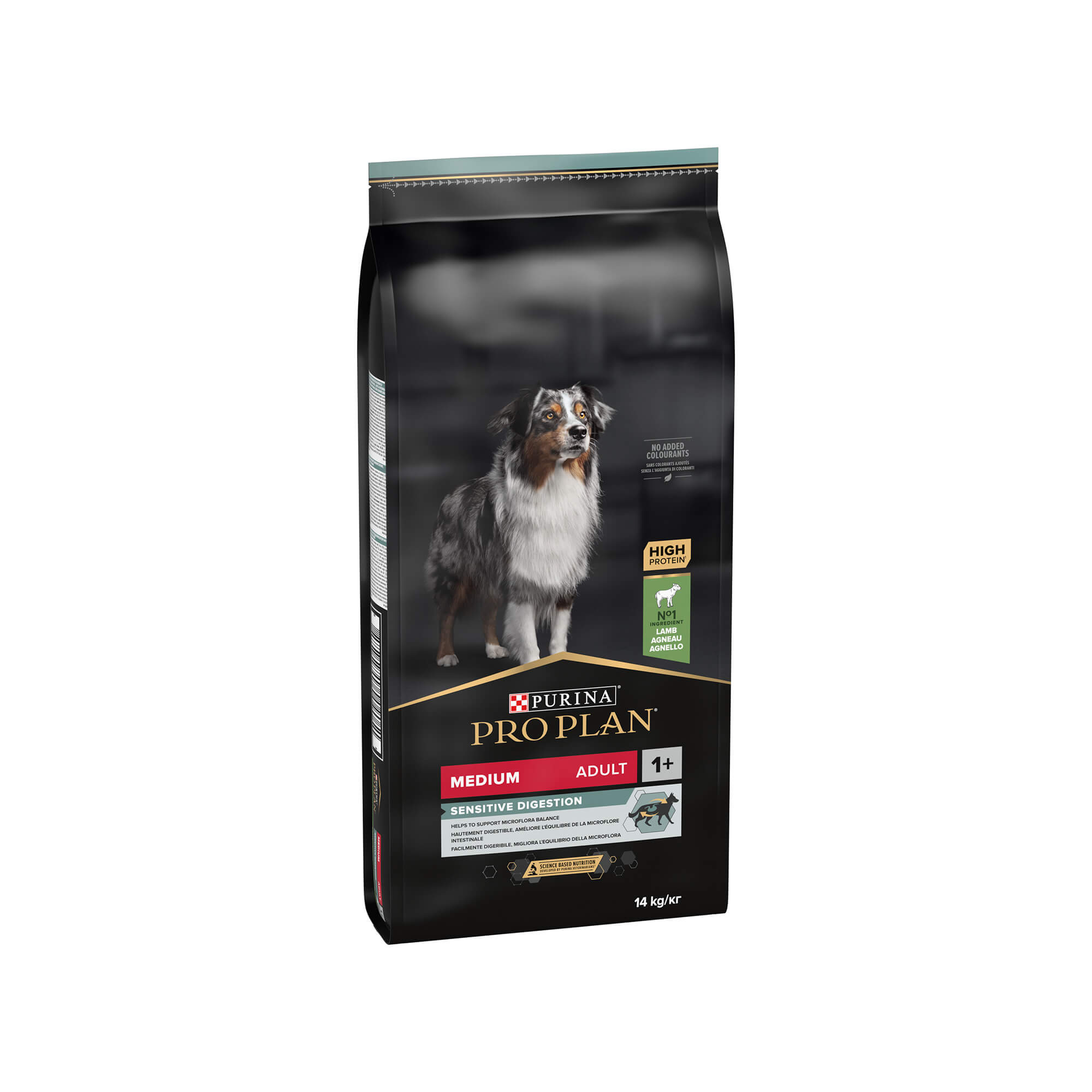 Suha hrana PURINA PRO PLAN ADULT za srednje velike pasme z občutljivo prebavo je bogata z jagnječjim mesom. Vsebuje formulo OPTIDIGEST, z uravnovešenim razmerjem hranil v količinah, ki so primerne za odrasle pse srednje velikih pasem s prebavnimi težavami.